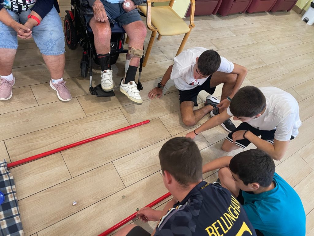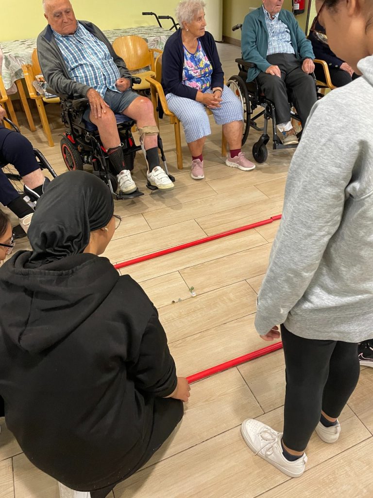Dentro de la situación de aprendizaje sobre juegos tradicionales hemos realizado varias visitas al centro de mayores de Mendavia donde nuestros alumnos y alumnas han aprendido a jugar a las canicas, las tabas, la peonza, la rana o la petanca. Los juegos tradicionales son aquellos transmitidos de generación en generación y no se nos ocurre quién mejor que los mayores de la residencia para que nos cuenten cómo jugaban de pequeños.